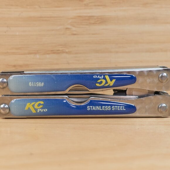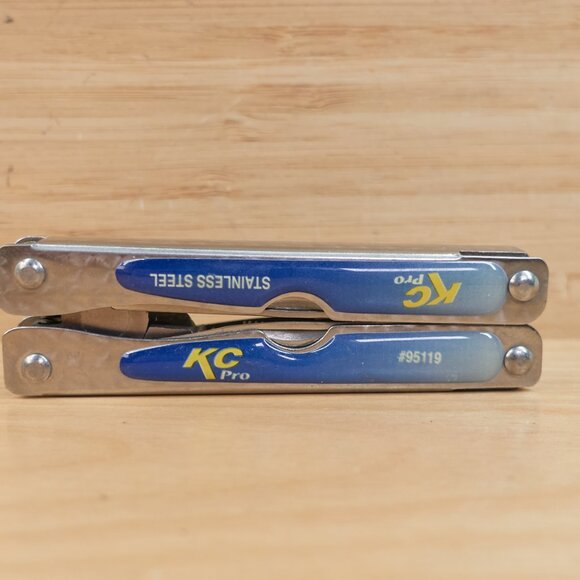 Vintage KC PRO Multi Tool model 95119, made of durable stainless steel and comes with its original carrying case. Features multiple fold-out tools for everyday tasks — compact, practical, and collectible.