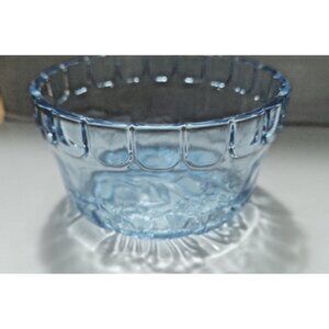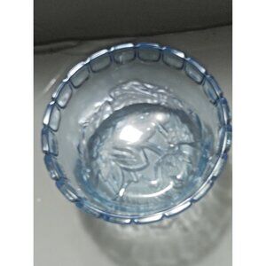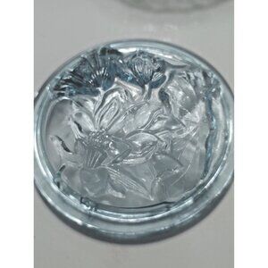 Vintage KIG Blue Glass Lidded Candy Jar Floral Lid Design 4" Tall x 4 1/2" dia.