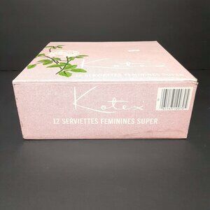 Vintage box of 12 Kotex Super Feminine Napkins. These are new / new old stock & sealed. Box has wear from storage with bends/creases and or marks/staining.