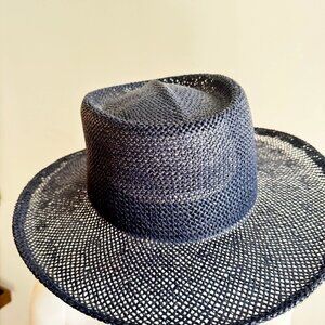 Vintage KP Navy Blue Straw Wide Brim Fedora Hat L