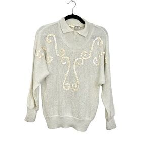 Vintage Kabri beige silver metallic sequin dolman sleeve sweater XS