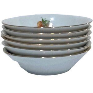 Vintage Kahla GDR Nappy Bowls Set of 6 Fruit Clusters in Centre w/Gold Edging