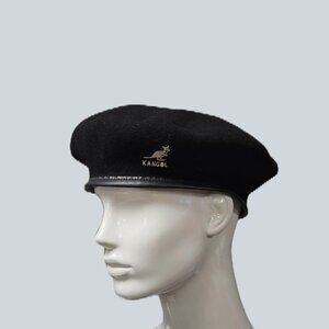 Indulge in a timeless accessory with our Vintage Kangol Black Wool Beret, embodying the essence of 90's vintage. Crafted from 100% wool with faux leather trim, this classic piece features an adjustable tie for a perfect fit.
