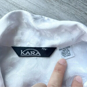 Vintage Kara White Printed Satin Button Down Shirt