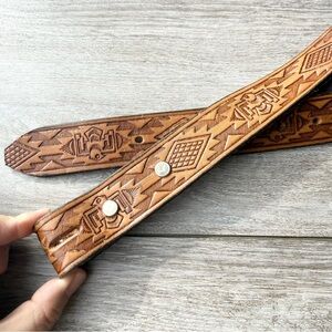 Vintage Karen Brown Hand Tooled Eagles Leather Belt STRAP Made in USA