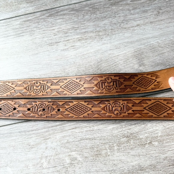 Vintage Karen Brown Hand Tooled Eagles Leather Belt STRAP Made in USA