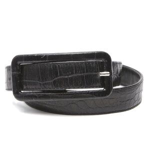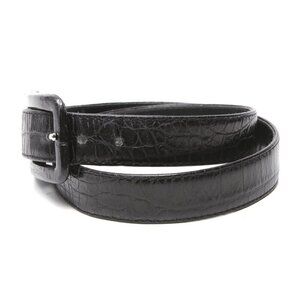Elevate your waistline with the timeless elegance of the Vintage Karen Palmer Leather Croc Embossed Belt in a sleek black hue. This classic accessory boasts a long buckle that adds a touch of retro allure to any outfit. Crafted from high-quality leather, the embossed crocodile pattern exudes a luxurious and sophisticated charm. The versatility of this belt makes it a staple piece in any wardrobe, perfect for both casual and formal occasions.