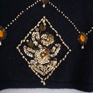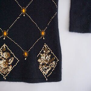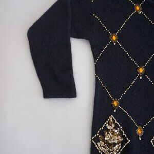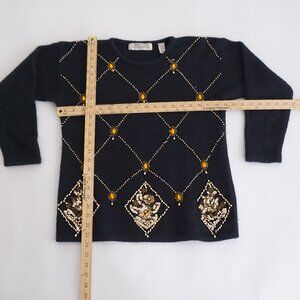 Vintage Karen Scott Black Embellished 58% Silk 2% Wool Sweater Holiday Glam PM