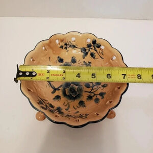 Vintage Katherine's Collection Handpainted Footed Blue Floral Candy Dish.