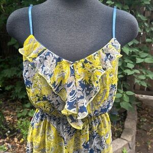 Vintage Katie Floral Yellow and Blue Flowy lined Women's Dress. Size Small.