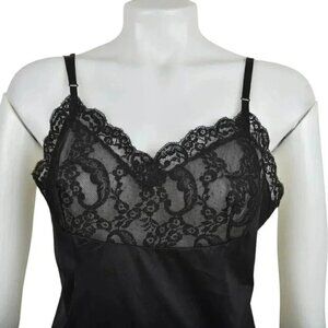 Vintage Kayser Black Slip Dress Lingerie Lace Size 36