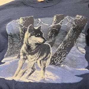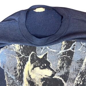 Vintage Keep It Simple Wolf Snow Nature Thin Boxy Light Sweatshirt Navy Blue M