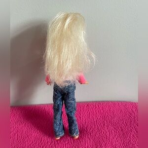 Charming doll wearing pink top and blue overalls. This doll has some flaws. Her legs are stained from her original outfit and her hair has some dryness even after detangling. Her legs are bendable but do slant a bit to one side. Otherwise she appears to be in good condition when dressed in her original outfit. Message me if you’re interested! :)