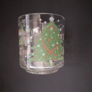 Vintage Kig Indonesia Set of 4 Clear Glass Christmas Scene Mugs w/ Handles