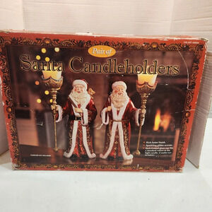 Vintage Kirkland Signature Christmas Pair of Santa Candle Holders 12.25"
