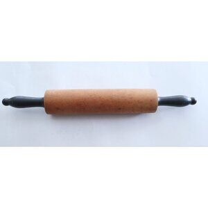 The rolling pin is in good condition showing minimal signs of age, no missing paint on the handles, and measures 18.5" long.