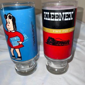 Vintage Kleenex Brand Promotional Glass Tumblers Drinking Glasses Set of 2