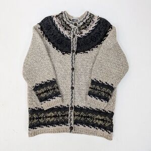 Vintage Knit Fair Isle Cardigan Norwegian Icelandic Button Down Cozy Comfy