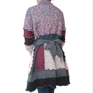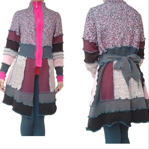 Vintage pink, red, and gray knit patchwork cottagecore cardigan sweater in size small.