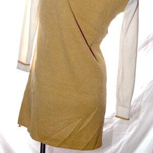 Vintage Golden Metallic Knit Sweater Dress. This is a 2 piece Set with long sleeve pullover shirt and sleeveless pullover dress, faux buttons on front. Can be worn together or seperate. This is in excellent condition and appears to be possibly new without tags.