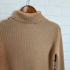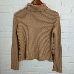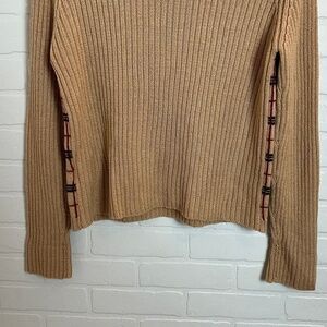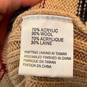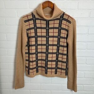 Vintage Knit Sweater Burberry vibe Old money Wool blend Plaid Tan/Black/Red S