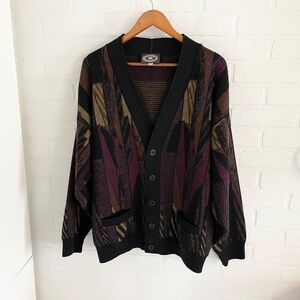 Vintage Knit Sweater Cardigan 3D knit Grandpa Dad energy Kurt Cobain Black Tan L