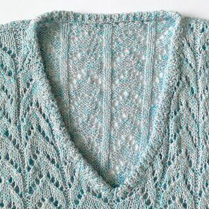 In good condition, this V-neck sleeveless knit vest is light and airy 🧚♂️There’s a slight iridescent shine in the white threads too ✨