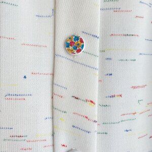 Vintage Knit White Colourful Geometric Detail Button Front Patch Pocket Skirt S