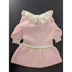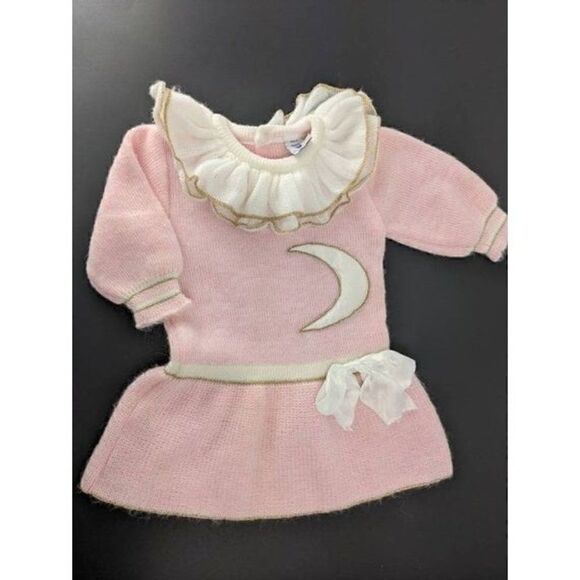 Vintage Knit baby dress, Girls Pink knit dress, T-2 Clayeux France