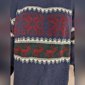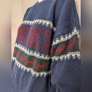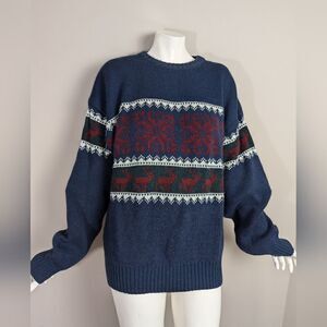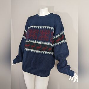 Vintage Knit holiday sweater, crew neck, moose snowflake M