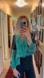 Vintage Kobi Halperin Black Lace Accents Teal Green Blue 100% Silk Button Up Down V Neck Blouse Shirt Long Sleeve Top