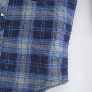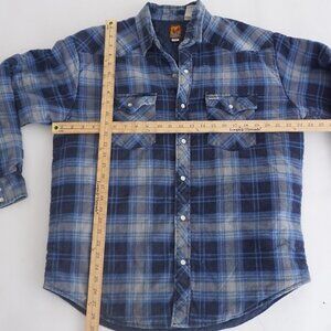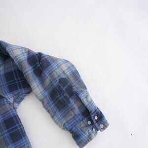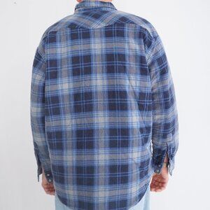 Vintage Kodiak Navy Gray Plaid Quilt Lined Snap Button Outdoor Shacket Large
