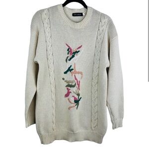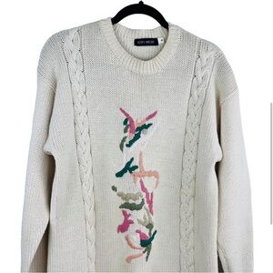 Vintage Kofi Wear Cream Knit Embroidered Crew-Neck Long sweater Size M. In excellent vintage condition