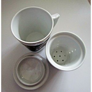 * Vintage Korean Asian Red Dragon Design Black White Tea Cup With Lid And Infuser