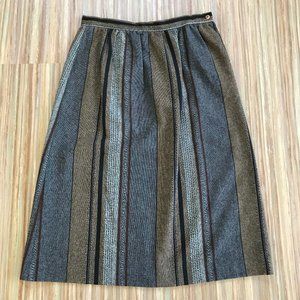 Vintage Koret Career Neutral Brown & Grey Stripe Wool Tweed Midi Skirt 30" Waist