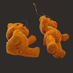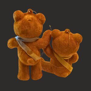 🐻 Vintage Kraft Peanut Butter Bear Ornaments (Set of 2, Flocked Plastic)