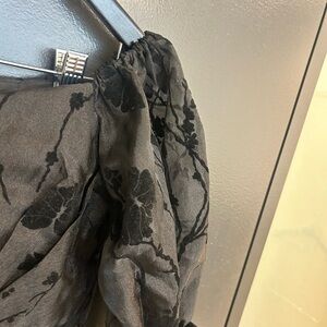 Vintage L huge puff feather sleeves with sheer and satin flowers details in excellent used condition- vintage so sizing was different back when this beauty was made- I think it’s still a standard L however I have included all measurements aside from hip as this dress is super puffy at the bottom so unnecessary. This is an incredible vintage dress perfect for a whimsigoth grad/prom compatible vintage styles are being sold for over 300. This is a stunner!!!