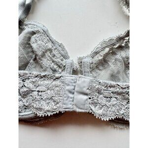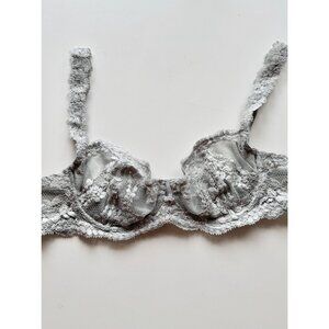 Vintage LA PERLA Silver Sage Green Stretch Lace Demi Balconette Bra, Size 3