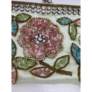 Vintage LAPIS Stone Gem Cut Bead Beaded Evening Bag Clutch Purse w chain AS IS