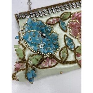 Vintage LAPIS Stone Gem Cut Bead Beaded Evening Bag Clutch Purse W Chain AS IS