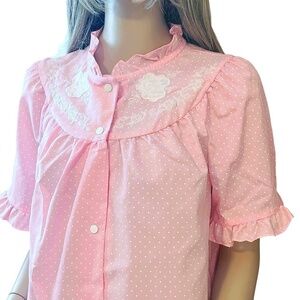 Vintage LAZY LIFE House Dress Robe Housecoat Ruffles Snaps Polka-Dot NWOT