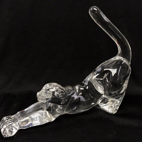 Vintage LENOX Crystal Glass Cat Panther Stretching Figurine 1994 Germany