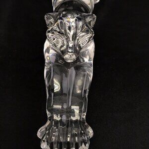 This is a beautiful large cat stretching in the morning. It is a retired Lenox fine lead crystal piece and is in excellent condition. It is 7" tall to tip of tail x 8.5" long and 2.5" wide. It is marked on the bottom 1994 Lenox.