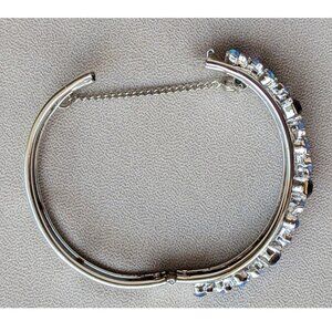 Vintage LISNER Silver Tone Blue Rhinestones AB Hinged Cuff Bracelet 6 3/4"