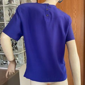 Vintage LIZ CLAIBORNE SILK BLOUSE Royal Blue, Short Sleeve, Petite Collection 4