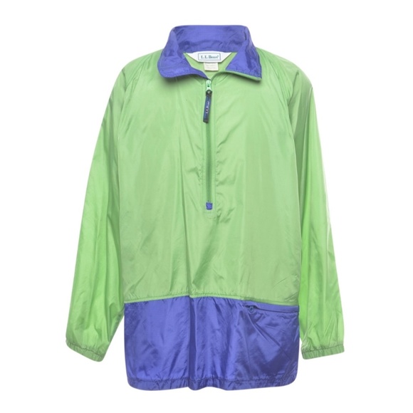 Vintage LL Bean Pullover Windbreaker Jacket Womens Size XL Lime Green & Purple