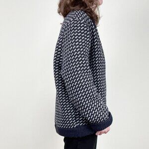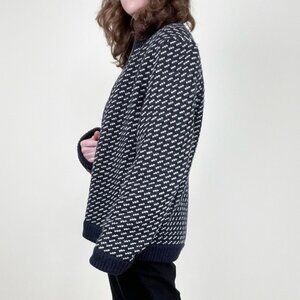 This vintage 1990s L.L. Bean wool knit coat, likely featuring a classic Fair Isle pattern, offers both warmth and timeless style, perfect for cozy layering. Its durable construction and heritage quality make it an enduring piece for any wardrobe, embodying the rugged comfort L.L. Bean is known for.