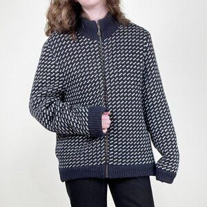 Vintage L.L. Bean Wool Knit Bomber Jacket Coat Sweater Fleece Lined Sweater 90s