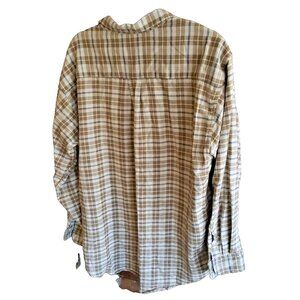 Vintage LL Bean checkered plaid men button down cotton tan beige shirt L