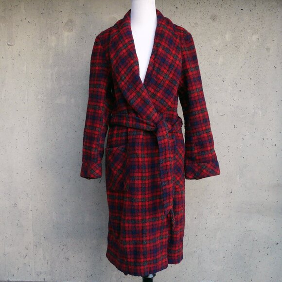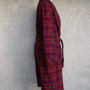 Vintage LLOYD Menswear plaid wool robe / smoking jacket, red& blue, Britain